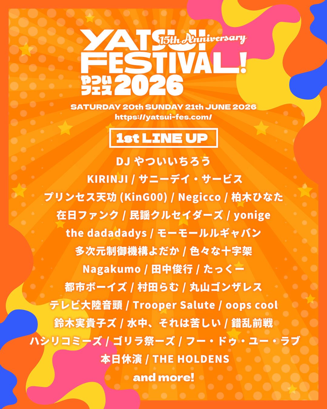 2026年6⽉20,21⽇「YATSUI FESTIVAL! 2026」出演決定!